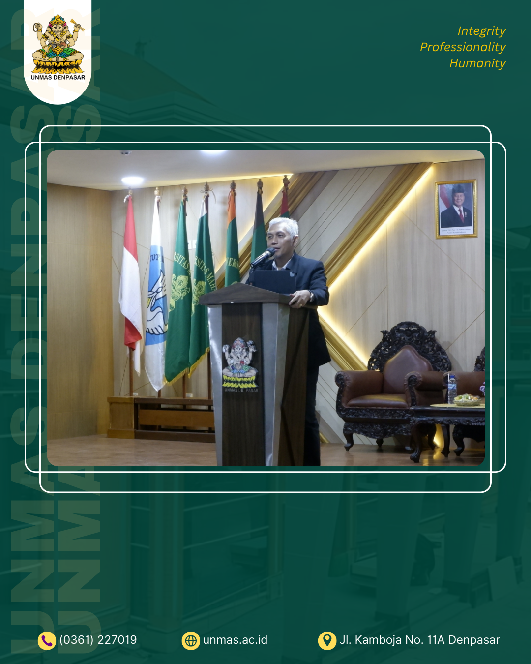 on Thursday, December 11, 2025, at Auditorium Ganesa, Universitas Mahasaraswati Denpasar, conducted in both offline and online formats.