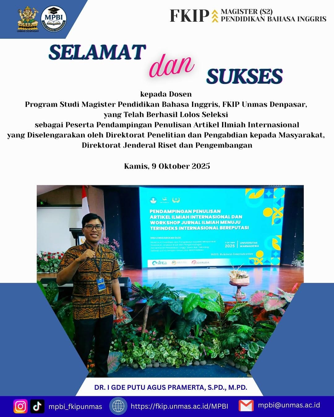🎉 Selamat dan apresiasi setinggi-tingginya kami sampaikan kepada Bapak Dr. I Gde Putu Agus Pramerta, S.Pd., M.Pd.,