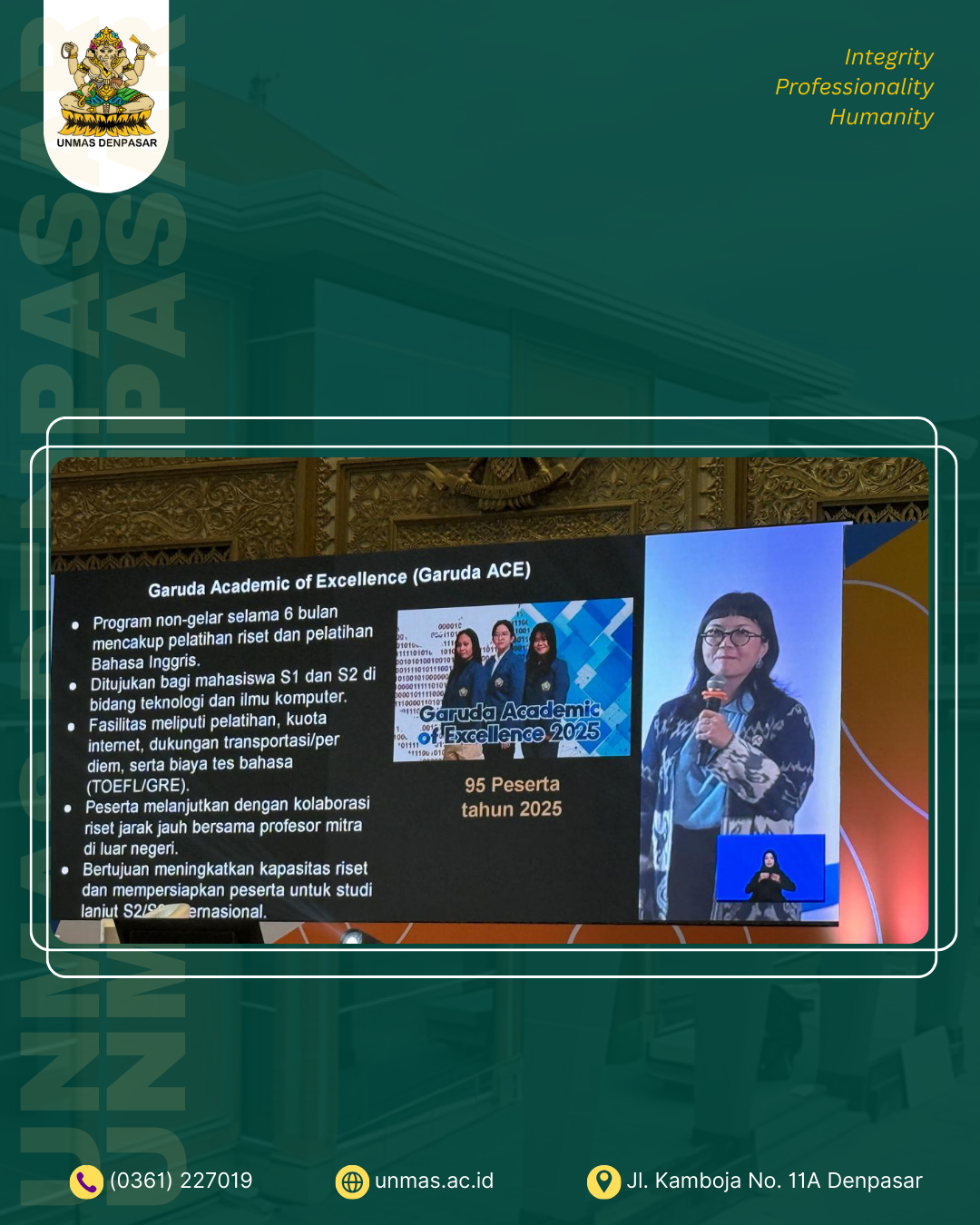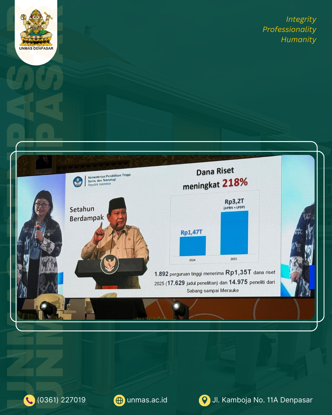 Kehadiran Rektor Unmas Denpasar dalam forum strategis ini menunjukkan komitmen Unmas Denpasar dalam mendukung agenda nasional terkait penguatan ekosistem pendidikan tinggi. Melalui keterlibatan dalam KPPTI 2025, Unmas Denpasar berkesempatan menjalin kolaborasi lebih luas, memperkuat penelitian, serta mendorong inovasi yang relevan dengan kebutuhan Indonesia masa depan.