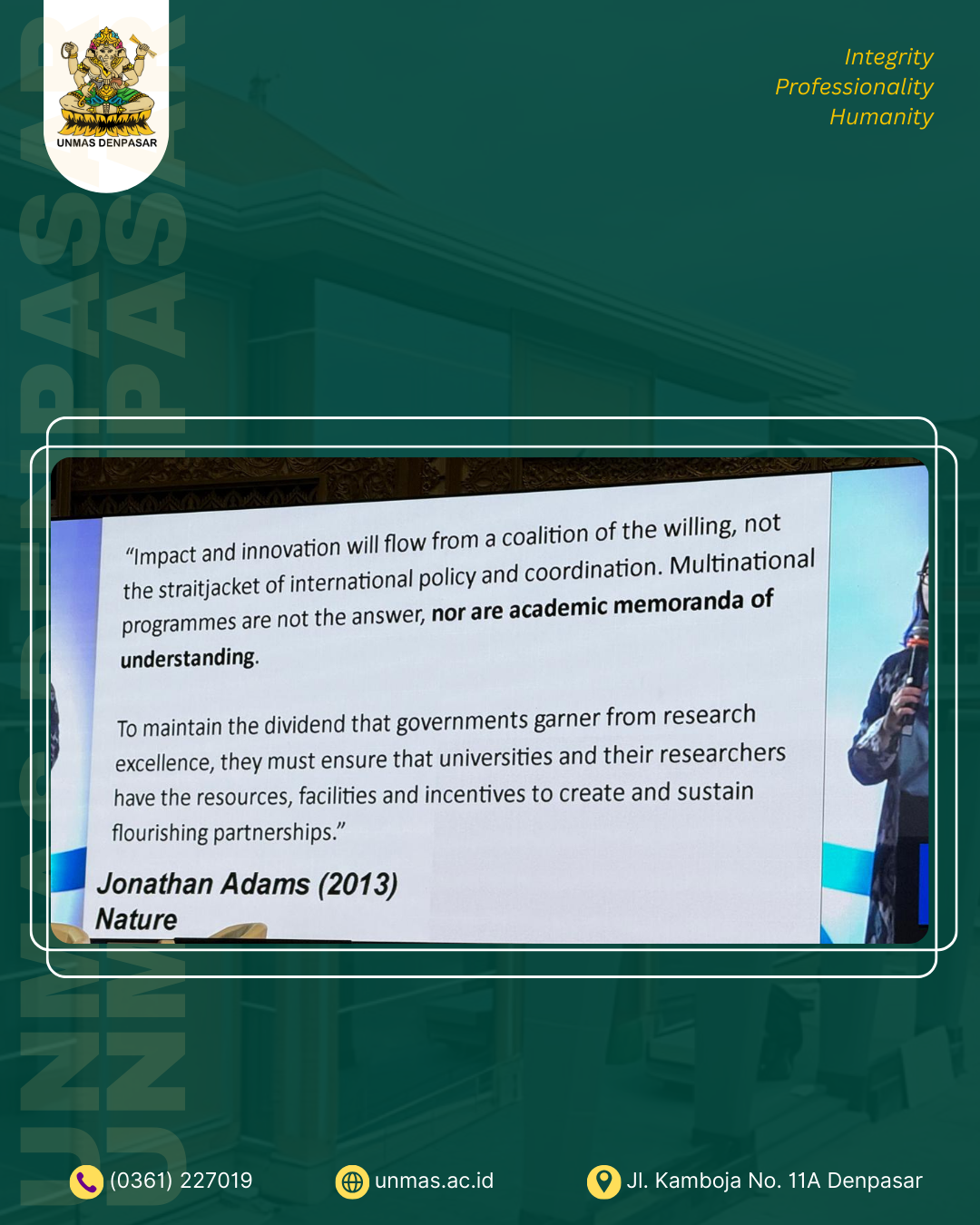 ”Kampus harus terus memperkuat riset dan inovasi, bukan hanya untuk pengembangan ilmu, tetapi juga untuk meningkatkan kesejahteraan dosen, mahasiswa, dan bangsa”